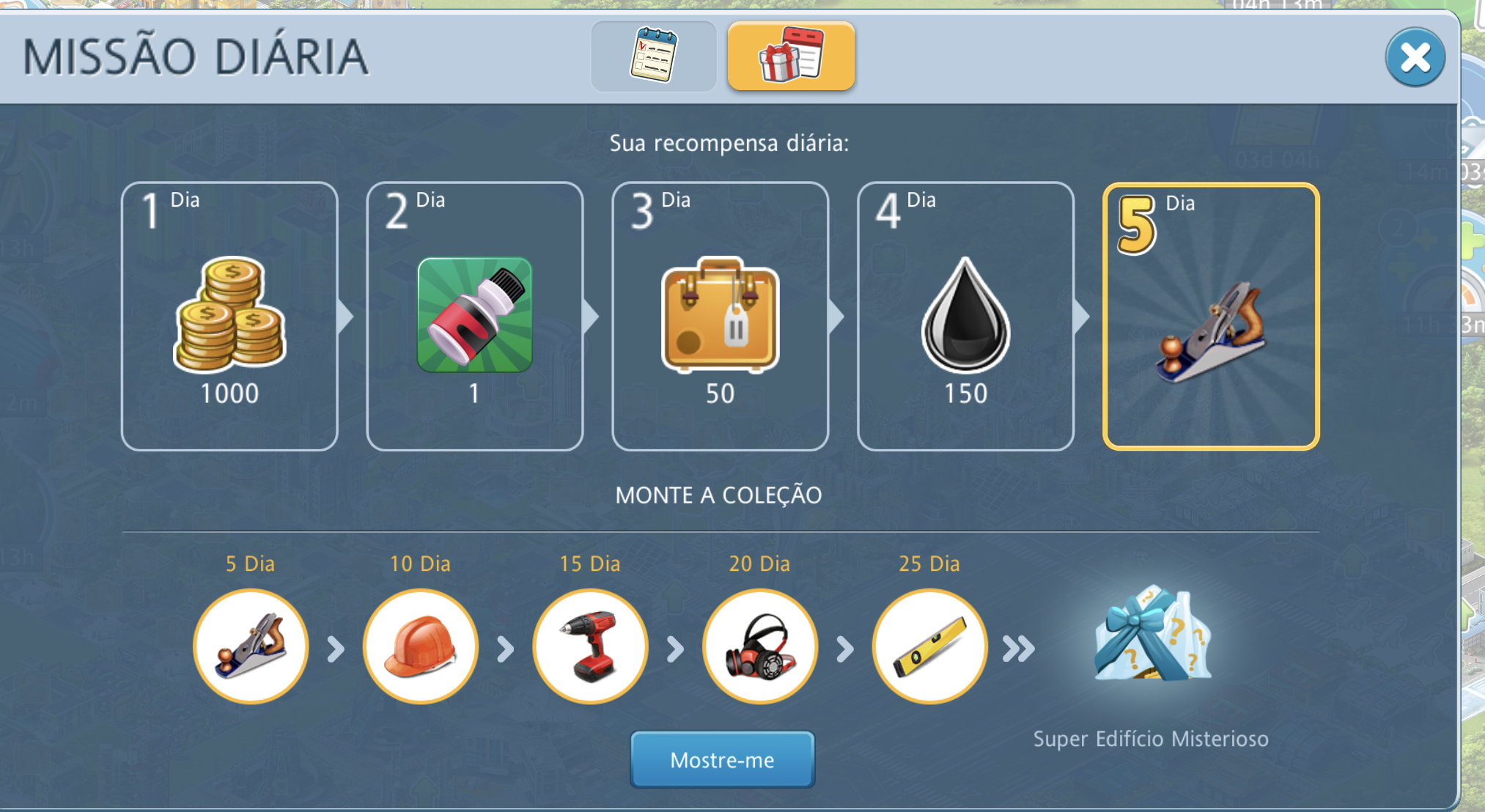 And if I remember well, if you miss one day it resetsIt's a collection you need to assemble. Each five days you get one item, you need five items to complete the collection. After completing the collection, the MSB is in your inventory (warehouse -> resources-tab).
